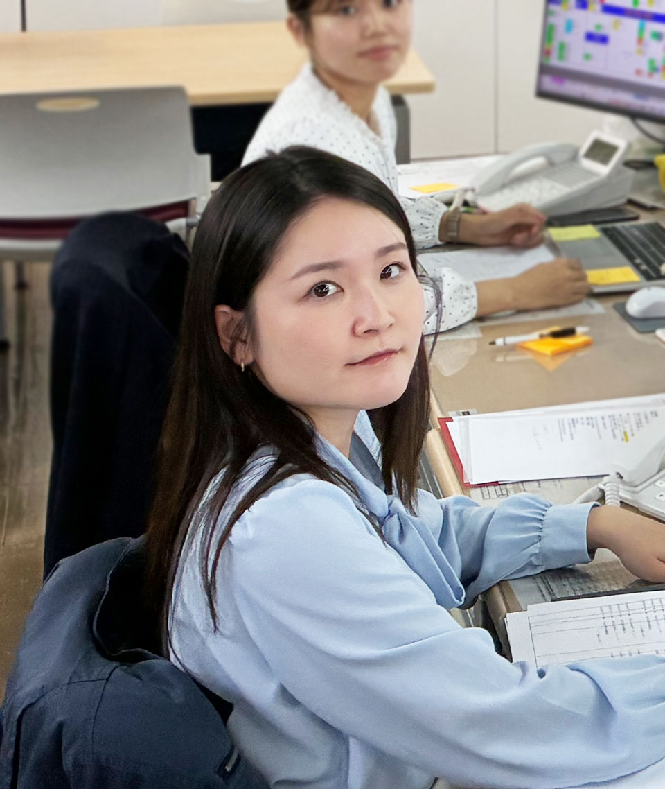 私は営業部の京阪チームに所属しています。京阪チームでは、船積みブッキング対応、お見積書の作成、配船スケジュールの調整、自社で保有しているトレーラーの管理などを行っています。