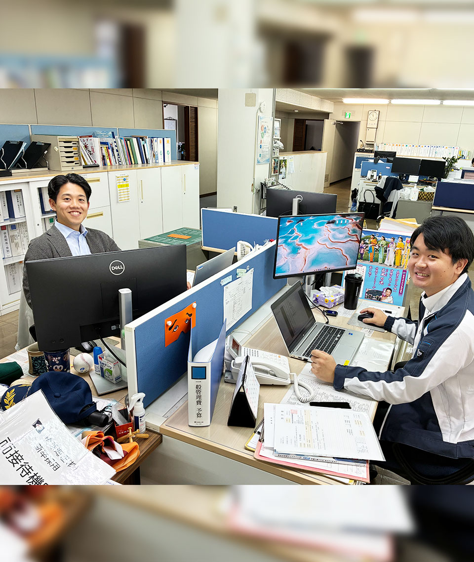 私が所属している総務部のしごとは、人事・労務・広報・役員秘書・社内行事の運営や組織運営に関わる環境整備・後方支援など多岐にわたります。私が主に担当している業務は、新卒採用のリクルートや社員研修の企画、グループ各社と実施する経営会議の事務局などを行っています。その他にも、幅広い分野の対応にあたることが多いです。どの部署にも属さず、かつ会社を運営するうえで欠かせない業務を担うことが多く、社内外と連携して会社を支える重要なポジションだということを日々の業務で実感しています。